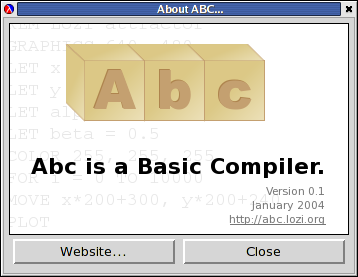This website is the official web page of abc. This software was a school project for the university of Nice I worked on in 2004. ABC is a very basic Basic compiler, developed with